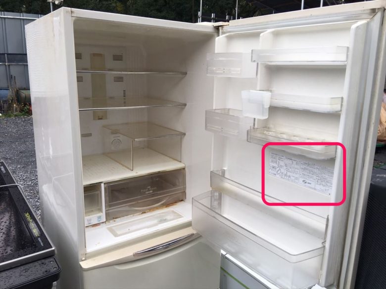 冷蔵庫を開けると扉の内側にシールが貼っています。